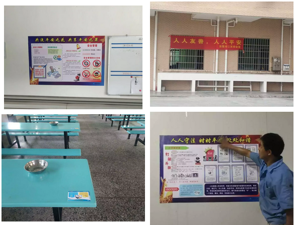 在企业公告栏、生产车间、员工食堂等人员密集处宣传平安文化,内容涵盖美德教育、法治宣传、法律普及、安全防范等。